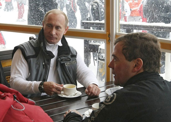 中新網1月4日電 綜合報道,俄總統梅德韋杰夫和總理普京3日一起在俄羅斯南部度假勝地索契的波利亞納滑雪場過新年。兩人在一起飲茶后,梅德韋杰夫起身結賬,普京緊跟在后,并未準備買單。普京表示:“無論買什么東西都是總統付錢。” 梅德韋杰夫則“大方”回應:“付賬是我的工作。”