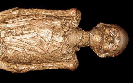 據(jù)英國(guó)媒體報(bào)道,美國(guó)芝加哥大學(xué)科學(xué)家日前利用X光掃描設(shè)備掃描的這具木乃伊被認(rèn)為是公元前800年,埃及底比斯神廟祭司時(shí)一名唱歌婦女的尸體。考古學(xué)家從安放該木乃伊的棺材上的雕刻文字認(rèn)定該木乃伊名叫梅熱薩姆(Meresamun)。從掃描的圖像上可看到當(dāng)時(shí)包裹尸體時(shí)使用的制作精良的裝飾品。