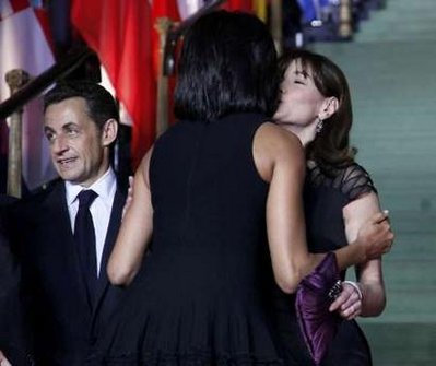 中新網(wǎng)4月5日電 美國總統(tǒng)奧巴馬與夫人米歇爾到訪法國時再施展魅力,連一向熱情奔放的法國第一夫人布呂尼(Carla Bruni)也似乎被他的魅力懾住,突然變得害羞起來。布呂尼本想以法式頰吻與奧巴馬打招呼,但卻中途改變主意,改為與奧巴馬握手。而她和奧巴馬夫人熱吻。這一含蓄舉動成為民眾熱話。