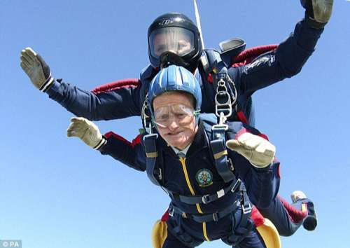英老翁98歲生日上演高空跳傘向慈善機構籌款(圖)