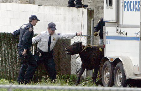 “中央社”援引美國媒體報道,這只叫做莫莉(Molly)的母牛6日逃過劊子手屠刀,和警察、屠夫在紐約皇后區(qū)附近上演一場人牛追逐大戰(zhàn)。
