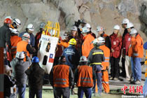 】智利圣何塞銅礦8月5日發生礦難,33名礦工在井下約700米深處被困超過2個月。經過設計方案、挖掘隧道等一系列準備工作,最后階段的救援于當地時間12日晚展開。智利總統以及多名智利官員到場迎接礦工出井。北京時間13日上午,首名升井礦工弗洛倫西奧•阿瓦洛斯搭乘特制救生艙回到地面,成功獲救,為最后階段拯救行動揭開序幕,所有被困礦工將被逐一送上地面,重獲新生。