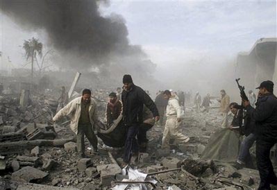 加沙城的醫院官員稱,加沙有100多人在空襲中喪生,其中包括警察總部內的40人,哈馬斯當時正在那里舉行新招募人員的畢業典禮,哈馬斯警察總部負責人陶菲克-賈比克在空襲中喪生。醫療官員稱,另有23人在以軍對加沙南部地帶的空襲中喪生,在一個空襲地點,以軍的空襲留下了一個巨大的彈坑。路透社電視圖像展示,穿著制服的尸體被堆在一邊,傷者則發出痛苦的叫聲。營救人員將那些有生命跡象的傷員抬到小車和救護車,其他人則試圖喚醒那些失去知覺的傷者。