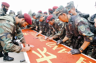 今天(9日)9時20分,“友誼—2010”中巴反恐聯合訓練上演“壓軸戲”,200余名中巴特種兵在蘭州軍區某訓練基地舉行實兵實彈綜合演練。隨后,此次中巴反恐聯合訓練落下帷幕。