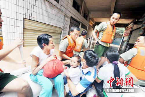 在特大洪水來臨之際,廣安市武警官兵充分發揮“特別能吃苦,特別能戰斗,特別能奉獻”的精神,積極戰斗在抗洪搶險第一線,與洪水賽跑,與時間賽跑,深入街巷搜尋和和轉運被洪水圍困的居民,確保群眾生命安全。 截至記者發稿時,廣安目前還沒有因為洪水造成的人員傷亡。(完)