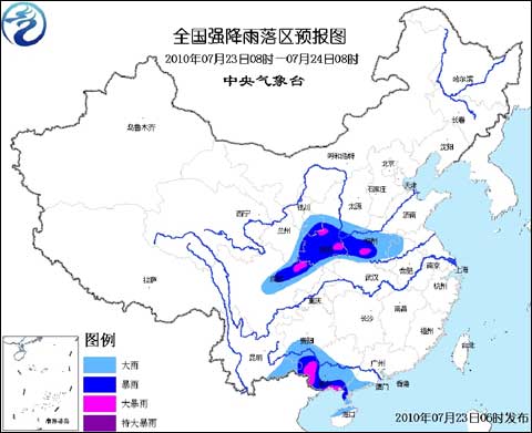 中新網7月23日電 中央氣象臺2010年7月23日06時繼續發布暴雨黃色預警: