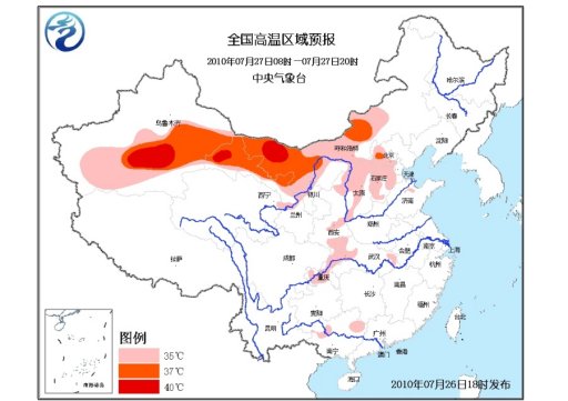 預(yù)計,明天白天,北京南部、河北中西部、山西大部、陜西東部、寧夏北部、重慶大部、湖北西北部和東南部、廣西中部等地有35℃以上的高溫天氣,局地最高氣溫可達37~38℃;內(nèi)蒙古中西部、甘肅中西部、新疆吐魯番盆地及南疆盆地大部等地將有35~37℃的高溫天氣,局部地區(qū)最高氣溫可達40℃以上。
