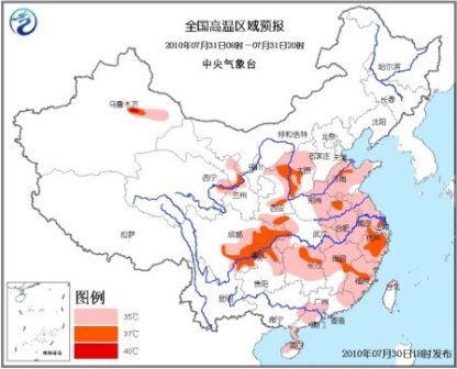 中新網7月30日電 中央氣象臺今日18時繼續發布高溫黃色預警: