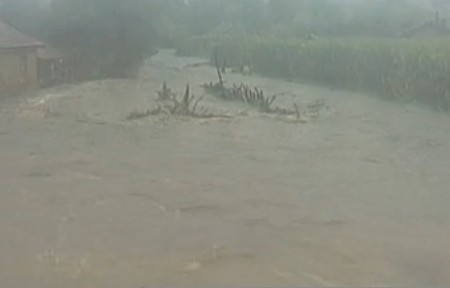 記者:我現(xiàn)在的位置是在小蒲柴河村的北面,您可以看見我旁邊有一條非常湍急的河流,這條河流您可能想象不到的是,其實在這場暴雨來臨之前它是并不存在的,昔日這塊地方是一片很大的菜園子,如今您還可以通過我右手邊的這個玉米地感受到昔日菜園的景象,但是由于一場暴雨,一夜之間,昔日的菜園變成如今的這樣的一條河谷,而由于這條河谷的存在,可以說從今以后每年到汛期來臨的時候,小蒲柴河村的村民們都會面臨著生命和財產(chǎn)的威脅。
