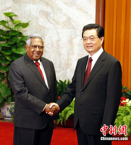 中新網8月18日電 據中國外交部網站消息,8月18日下午,國家主席胡錦濤在人民大會堂會見了新加坡總統納丹。