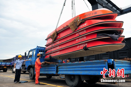 據(jù)了解,這批發(fā)往災(zāi)區(qū)的防汛物資包括沖鋒舟80艘、橡皮舟40只、船外機(jī)120臺、救生衣1萬件、鉛絲網(wǎng)兜4000個(gè)、查險(xiǎn)燈500盞等,于8月19日通過鐵路開行“搶”17次專列發(fā)運(yùn)到成都東貨場進(jìn)行轉(zhuǎn)運(yùn)。