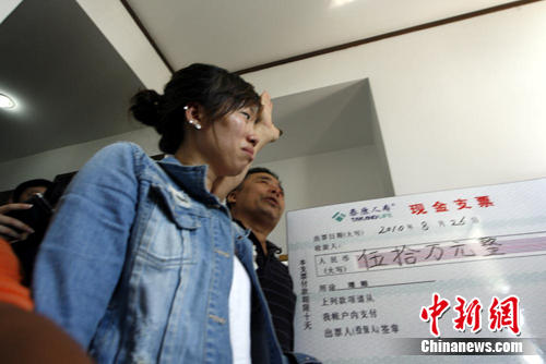 26日10時30分左右,泰康人壽總裁劉經(jīng)綸趕到遇難者家屬居住的光明商務(wù)酒店,親自將寫有50萬元的支票交到遇難者姚鐵強(qiáng)的家屬手中。這是伊春空難發(fā)生以來,遇難家屬獲得的第一筆大額賠款。