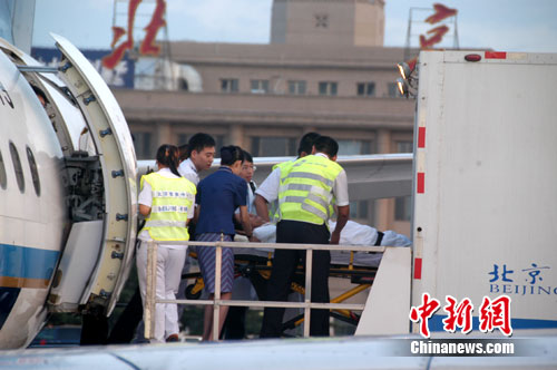 中新網北京8月28日電(張正尤) 8月27日18時15分,10名伊春“8•24”空難傷員飛抵首都國際機場。被在此等候的北京急救中心12輛急救車火速轉運到北京大學第三醫院、北京積水潭醫院救治。每家醫院安排收治5名傷員,傷員隨行家屬來京照顧傷員。