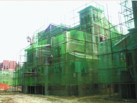 小區(qū)進門處,碩大的工程規(guī)劃圖引起了記者的注意:這個小區(qū)的規(guī)劃是成棟的聯(lián)排別墅,廣告宣傳語標(biāo)有‘西班牙風(fēng)格別墅’字樣。小區(qū)內(nèi)建筑工人正在施工。