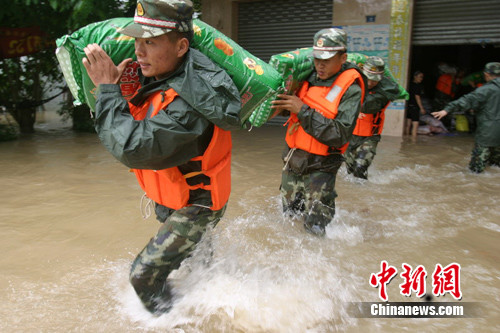 中新網瓊海10月6日電(孫勇)連日來,特大暴雨襲擊海南,道路、田地等一片汪洋,給人民群眾的生命財產安全造成了嚴重威脅。武警海南總隊官兵聞訊緊急出動,全力以赴迎戰洪魔,竭盡全力搶險救災,疏散、轉移、搶救受災群眾2000余人,挽回經濟損失3500余萬元。