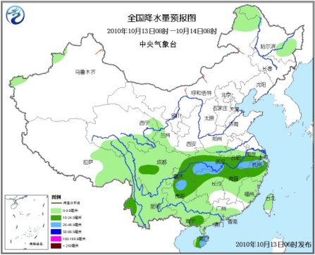 中新網10月13日電 據中央氣象臺預報,未來三天,中國南方大部地區將以陰雨天氣為主,其中,四川南部、貴州北部、云南西北部、湖南北部、湖北南部、江西東北部、安徽南部、浙江北部、海南大部、臺灣東部等地有大雨或暴雨,上述地區局部并伴有短時雷雨大風等強對流天氣。此外,新疆西部山區、西藏中東部、青海東部和南部、內蒙古東北部、東北中北部、甘肅南部、川西高原北部等地還將有小到中雨(雪)或雨夾雪天氣。