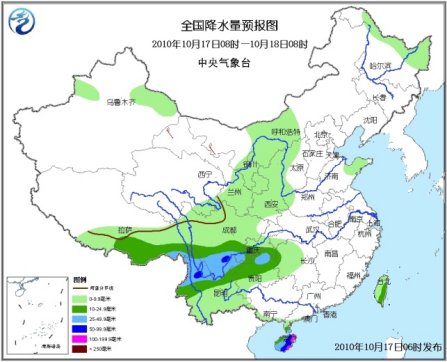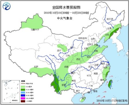 中新網10月17日電 據中央氣象臺預報,受冷暖空氣共同影響,未來三天,新疆北部、西藏中東部、內蒙古中部、東北大部等地將有小到中雨(雪)或雨夾雪,西北地區東部、華北、黃淮大部、西南地區等地有小到中雨,其中,云南北部、四川南部、貴州北部等地的部分地區有大雨,局地有暴雨。另外,今天,海南大部仍有大到暴雨,局地有大暴雨。