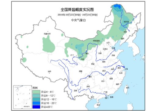 未來三天,冷空氣的勢力還將繼續向南推進。中央氣象臺今天6時繼續發布寒潮藍色預警。預計,24日8時至26日8時,甘肅大部、青海北部、寧夏、陜西、內蒙古南部、東北、華北、黃淮、江淮、江漢、江南北部、四川盆地東部、重慶、貴州北部等地將出現6~12℃降溫,其中,內蒙古東南部、河北大部、東北大部、山東、江蘇北部等地的部分地區降溫幅度可達14~16℃;上述大部地區并伴有4~6級偏北風。內蒙古南部和東北部、甘肅中東部、青海、寧夏、華北北部、黑龍江、吉林等地將有小到中雨轉雨夾雪或小到中雪,局地有大雪。