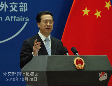 中新網(wǎng)10月28日電 據(jù)外交部網(wǎng)站消息,2010年10月28日,中國(guó)外交部發(fā)言人馬朝旭主持例行記者會(huì)。答問如下。