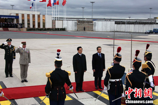 在短短兩天訪問期間,胡錦濤將與薩科齊至少5次會(huì)面,而薩科齊可謂“全程陪同”。特別是,薩科齊將在結(jié)束外地視察返回巴黎后,直接在機(jī)場迎接胡錦濤的到來并送至下榻飯店。胡錦濤將與薩科齊同乘一車,接受法國共和國衛(wèi)隊(duì)百余名盛裝騎兵的歡迎。這種高規(guī)格安排,在薩科齊就任總統(tǒng)三年來尚屬首次。