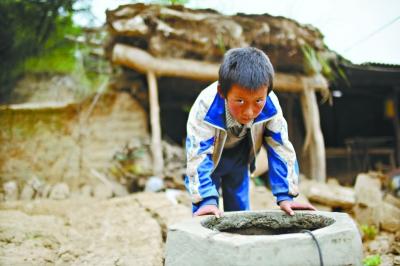 房屋的受損并不是張隴輝最擔心的,他最擔心的是飲水問題。“每戶家里都有5米深的蓄水池,吃水全靠它,平時水能蓄4米深,你看,現在都見底了。”張隴輝指著一處蓄水池對記者說。