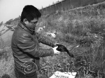 志愿者后來(lái)又在草叢中找到了兩只已經(jīng)死亡的鵲鴨。一上午的時(shí)間,志愿者共發(fā)現(xiàn)了11只渾身油污的鳥,其中有6只死亡。當(dāng)日下午,志愿者在賓館用各種方法,甚至用了洗發(fā)水,但油污就像瀝青一樣粘稠,無(wú)法清理干凈,在這個(gè)過(guò)程中,又有3只鳥死亡。