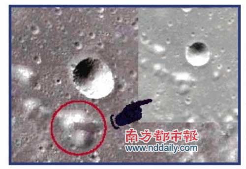 記者到GoogleMoon網站找到了相同區域的月球圖片,發現光照角度有明顯差別。可能因為分辨率原因,Google的照片看不清是否存在同樣馬賽克區域,不過可以看到其它區域圖片上有不少明顯的拼接痕跡,也有馬賽克。