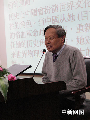 中新網天津12月2日電(張國)美籍華人物理學家、諾貝爾物理學獎獲得者楊振寧,12月2日在南開大學演講時強調:任何學術研究都離不開三個要素,即眼光(Perception)、堅持(Persistence)與能力(Power)。