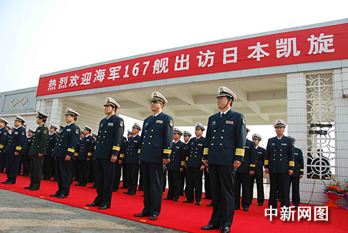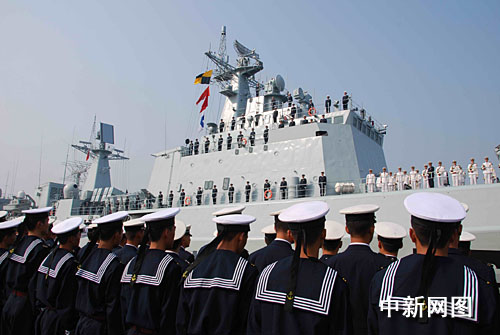 中國海軍副政委鄔華揚、廣州軍區副司令兼南海艦隊司顧文根等和數百名海軍官兵專程到碼頭迎接“深圳”艦凱旋。
