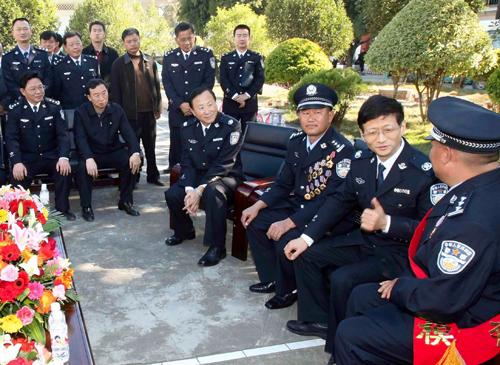 1月6日下午,孟建柱一行驅(qū)車專程來到德宏州盈江縣公安局,看望慰問全國公安系統(tǒng)二級英模、盈江縣公安局政委李興忠和全國特級優(yōu)秀人民警察、盈江縣公安局原禁毒大隊長祝啟華。看到英雄身上在戰(zhàn)斗中留下的傷痕,孟建柱關(guān)切地囑咐他們要注意保重身體。他撫摸著李興忠受傷的手動情地說,你們在禁毒斗爭中,英勇頑強,出生入死,不怕流血,不怕犧牲,為禁毒事業(yè)作出了重大貢獻(xiàn),無愧于英雄的稱號,廣大公安民警要以你們?yōu)榘駱樱垒嶂矣邳h、忠于祖國、忠于人民、忠于法律的政治本色,以黨的十七大精神為動力,在新的歷史起點上,把各項公安工作做得更好,為黨和人民再立新功。(徐燦 施曉焰 趙飛/圖)