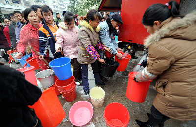 來自郴州市自來水公司的消息說,目前郴州市一共只設(shè)置了29個取水點,而對于用水出現(xiàn)困難的一些小區(qū),政府正組織消防車輛有計劃地送水上門,但每戶用水量都有控制。