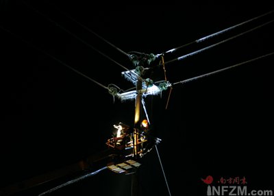 郴州市電業局專家稱,他們的電網在易結冰點共有10個觀冰哨所,1月11日已發現結冰現象,此后就開始電流短路融冰——讓兩條導線人為短路,從而使導線發熱融冰,或者通過變壓器把高壓電變成低壓大電流,從而達到融冰效果。
