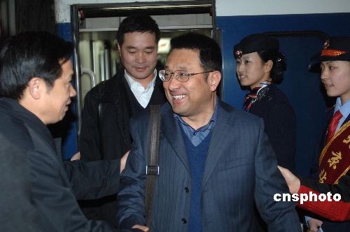 二月二十八日清晨,參加全國政協十一屆一次會議的吉林委員乘坐火車抵達北京,他們是首批抵京的京外委員。中新社發 廖攀 攝