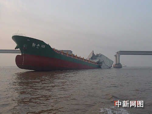 中新網北京3月27日電 (記者 周音)今日四時三十分交通運輸部接到報告,浙江臺州路橋船務有限公司所屬“勤豐128”輪在航行至在建的浙江寧波金塘大橋時,船舶桅桿與該橋面發生碰撞,橋面箱梁塌落,壓在“勤豐128” 輪駕駛臺上,船上二十名船員,十六人獲救,四人失蹤。橋面無人員通行,橋上無人員落水。