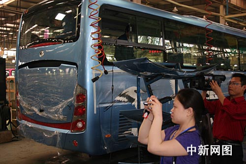 中新網4月16日電 第七屆“網上看河南”采風團16日走訪宇通集團有限公司等鄭州重要企業。