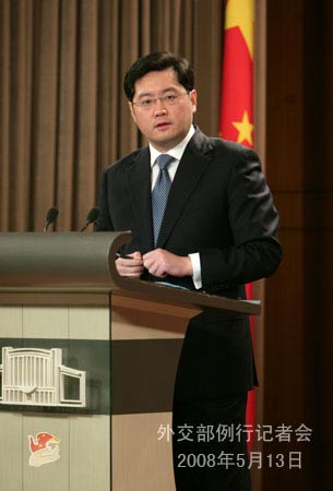 中新網5月13日電 外交部網站消息,5月13日下午,中國外交部發言人秦剛舉行例行記者會,就四川汶川嚴重地震災害、朝鮮半島核問題等答問。
