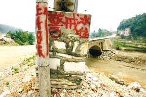 震后十多天,這位鄉(xiāng)干部對數(shù)字的敏感性越來越高,在他的腦海中,村里上游唐家山堰塞湖每一點(diǎn)細(xì)微的變化都關(guān)乎著幸存者的性命!疤萍疑綁胃110多米,前兩天領(lǐng)導(dǎo)跟我們開會的時(shí)候說,現(xiàn)在水深已經(jīng)達(dá)到90多米,每天還在升高3米左右。最壞的情況是完全潰壩,整個(gè)綿陽110多萬人都要受到影響。”韓國君說,雖然水流夾雜泥石到村里還要40多分鐘,但為了萬無一失,村里已經(jīng)設(shè)立了三個(gè)觀察哨所,一旦洪水來臨,將拉響警報(bào),讓還留在家里的村民趕緊上山避險(xiǎn)。