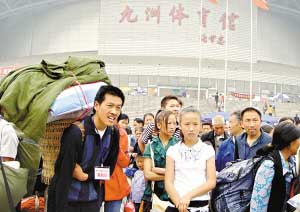 汶川大地震發生后,綿陽九洲體育館成了受災群眾的臨時安置點,數萬村民曾被轉移到這里。不過,昨天,記者在現場看到,幾十輛大巴正在將部分村民轉移出去,“我們是回家。”背著大筐、排著隊的村民說。