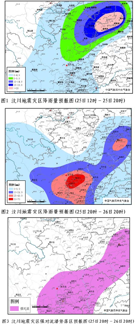 25日夜間至26日白天,四川、甘肅南部、陜西南部等地震災(zāi)區(qū)將出現(xiàn)一次中到大雨、局地暴雨天氣,并伴有短時雷雨大風(fēng)等強(qiáng)對流天氣。四川北川(包括堰塞湖地區(qū))、理縣、汶川、都江堰、茂縣、綿竹的降雨量為20-60毫米,青川、廣元的降雨量為8-20毫米,甘肅文縣、陜西寧強(qiáng)和略陽的降雨量為3-10毫米,上述地區(qū)伴有短時雷雨大風(fēng)天氣,請注意采取帳篷的防風(fēng)防雷措施。