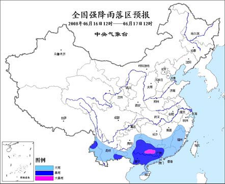 預計今天中午到明天中午,云南西部和中南部、貴州東南部、湖南南部、江西南部、福建大部、廣西、廣東大部等地有大雨,其中,云南西北部和東南部、貴州東南部、廣西大部、廣東北部等地的部分地區有暴雨,局部地區有大暴雨并伴有短時雷雨大風或冰雹等強對流天氣。