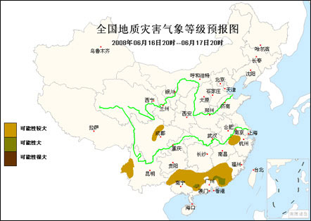 中新網(wǎng)6月16日電 中國氣象臺消息,國土資源部、中國氣象局16日下午5時聯(lián)合發(fā)布地質(zhì)災(zāi)害氣象預(yù)報: