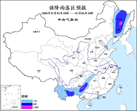 中新網7月5日電 據問天網消息:中央氣象臺7月5日下午六點鐘發布暴雨預報:預計今天夜間到明天白天,遼寧中北部、吉林中西部、黑龍江中西部、山東半島以及云南中南部、貴州南部、廣西西北部、湖南西北部等地的部分地區有大到暴雨,局部地區有大暴雨。
