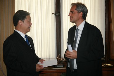 中新網(wǎng)7月24日電 據(jù)意大利《歐聯(lián)時報》報道,中國駐意大利大使館孫玉璽大使日前會見了意大利保險公司忠利集團常務(wù)董事塞爾喬·巴爾比諾先生。對意大利企業(yè)積極支持中國災(zāi)區(qū)重建給予了充份的肯定和表彰。并代代表中國政府、中國人民,對意大利政府和人民,對意大利企業(yè)的慷慨之舉表示由衷的感謝。
