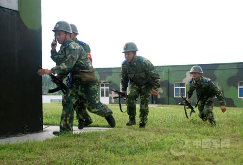 “接到上級通報,一名恐怖分子侵入我導彈庫區,欲實施破壞。上級命令我部快速將其抓捕”。警衛連應急分隊隊長余立華下達作戰任務后,火速帶領隊員奔向目標地域。8月8日,一場反恐演練在濟空某部展開。