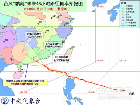 臺風“鸚鵡”未來48小時路徑概率預報圖