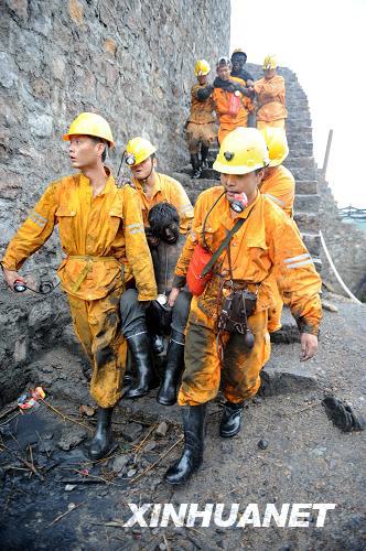 9月7日,兩名遇險礦工被救出。當日凌晨,鶴煤集團在河南省禹州市萇莊鄉(xiāng)的兼并礦仁和煤礦發(fā)生透水事故,當時有50多人被困,后有30多人升井,目前6人獲救,18人被困。有關部門正在緊急組織救援。新華社記者 朱祥攝