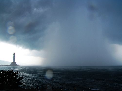 8月29日上午10時許,在三亞南山景區的海面上出現水龍卷,俗稱“龍吸水”,其持續時間約10分鐘。省氣象臺氣象專家稱,“龍吸水”只是一種天氣現象,與地震沒有必然聯系,并非地震的預示。