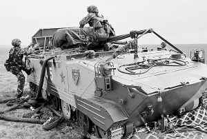 與裝備同時(shí)空投的傘兵著陸后迅速解除戰(zhàn)車傘降裝具。李靖攝