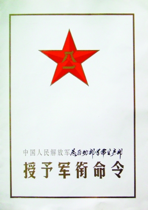 圖:1988年新軍銜制實(shí)施后頒布的授予軍銜命令狀。