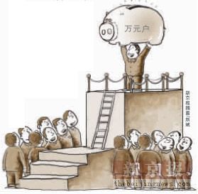萬(wàn)元戶(hù),意指一戶(hù)人家有了一萬(wàn)元人民幣。這一20世紀(jì)80年代初,在中國(guó)出現(xiàn)的新名詞,很快席卷大江南北,并演變?yōu)榈谝慌跋雀黄饋?lái)”的人的代名詞。